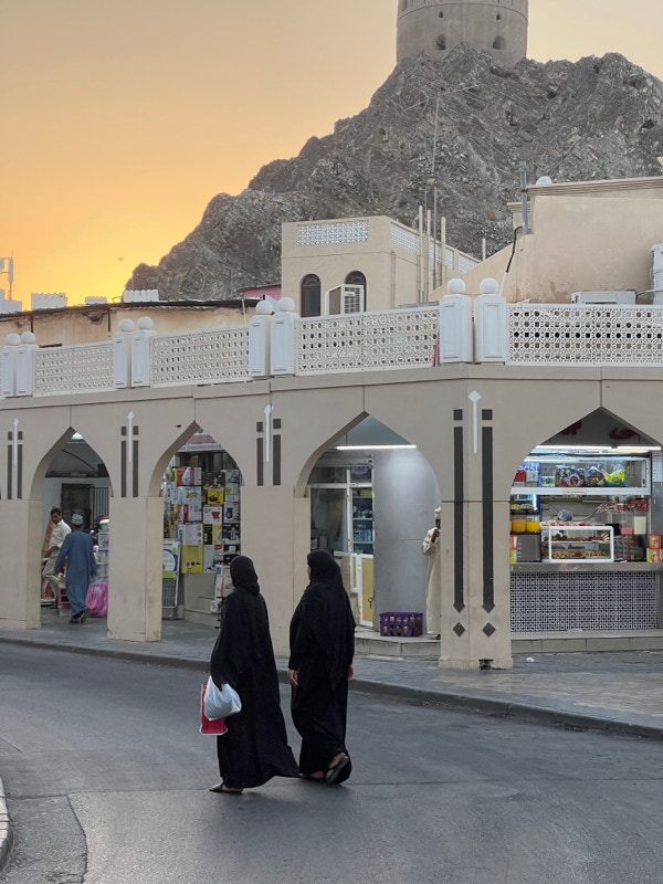We took the back road between Mutrah and Old Muscat, which was the traditional trading route and, until a few years ago when a new road was built on reclaimed land along the shoreline, the only access road to Old Muscat. As we were about to descend the steep road into Old Muscat, this approach presented us with the traditional view that ancient traders received when they reached Oman’s capital city – then (as now) a surprisingly tiny, seemingly isolated township that faces the sea rather than the land.