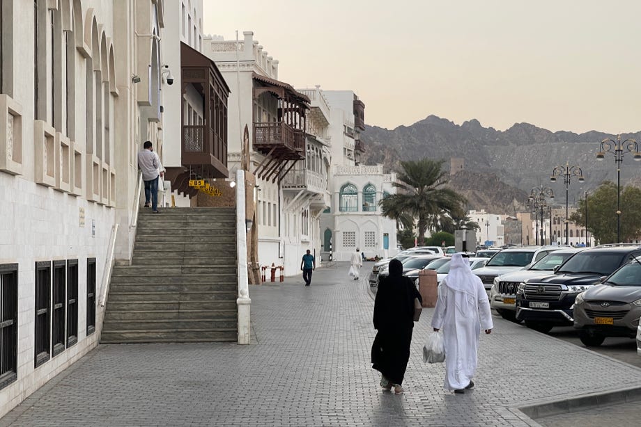 In the late afternoon and early evening, Terry was keen to introduce me to Muscat. It was immediately apparent that Muscat is markedly different to other cities in the Gulf region. With a history of at least 1,800 years, it has retained its intimacy in a way that has eluded other recently expanding cities such as Dubai, Doha, Bahrain, Kuwait City and Abu Dhabi, not to mention Riyadh and Jeddah in nearby Saudi Arabia, all of which are now dominated by ‘glass-and-concrete’ high-rise development. Perhaps only Sana’a in Yemen retains a more traditional atmosphere than Oman among the region’s capital cities.
