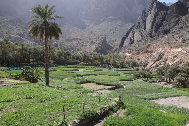 The rugged mountains that I had to cross were part of the Hajar Mountain range (“Hajar” means ‘rocky’ or ‘stone’). The Hajar Mountains are the highest mountain range in the eastern Arabian peninsula, topping out at Oman’s highest peak, Jebel Sham, at 3,028 metres, almost half as high again as Australia’s highest mountain, Mount Kosciuszko.