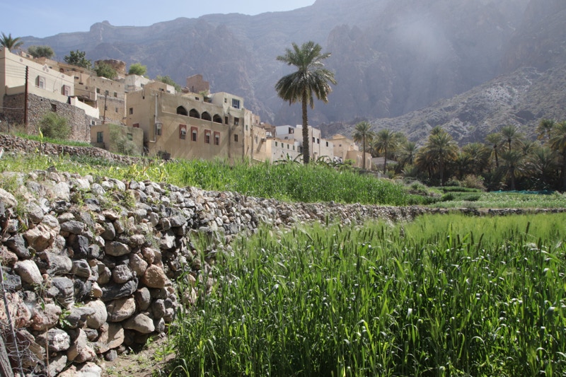 I woke up this morning to the competing sounds of roosters crowing and the pre-dawn call to prayer from the minaret of the mosque across the valley. My room in the guesthouse with its cave-like mud-rendered walls sitting atop the main rock in Misfah al Abriyyin was a very special place to spend the night.
