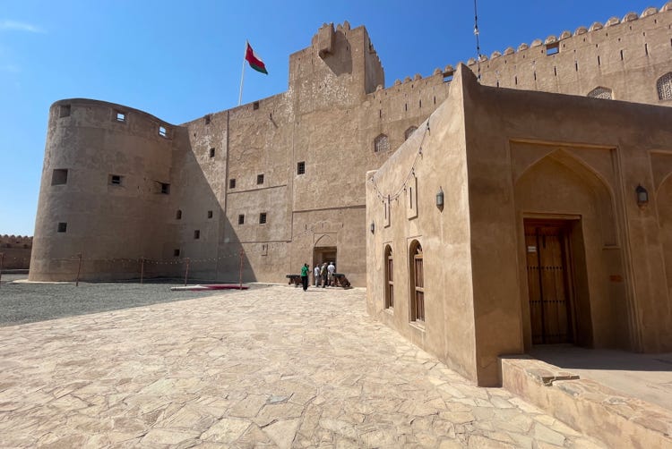 The first sector of my drive took me 175 kilometres inland from Muscat to Nizwa, Oman’s former capital city. The drive took me about two hours along an excellent highway (if we ignore one long section under reconstruction). After parking the car in the central open car park, the first thing I did was to make a Video facetime call to my son who was celebrating his 40th birthday on that day.