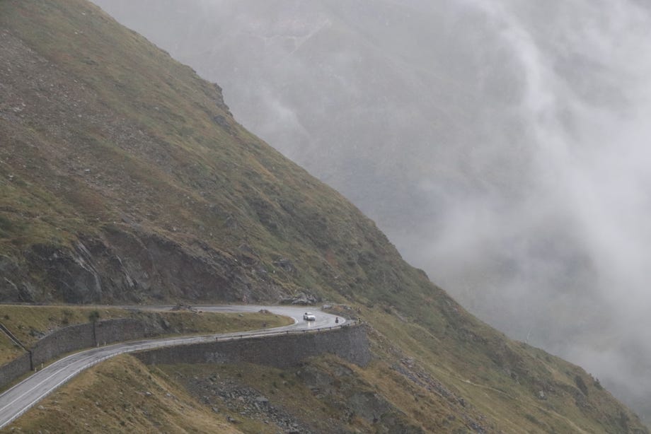 The weather on this trip has become something of a theme. As I had my breakfast this morning and looked outside through the window, the weather commanded my attention – it was dark, foggy and raining heavily. I should not have been surprised, as the weather forecast had predicted that a band of heavy rain would move across Romania today. My issue was that a significant component of my drive today was to traverse Romania’s second highest paved road across the Făgăraş Mountains, a high section of the Southern Carpathians. This road is commonly called the Transfăgărăşan Road, although its official name is Route 7C (ah, the romance of place names!).