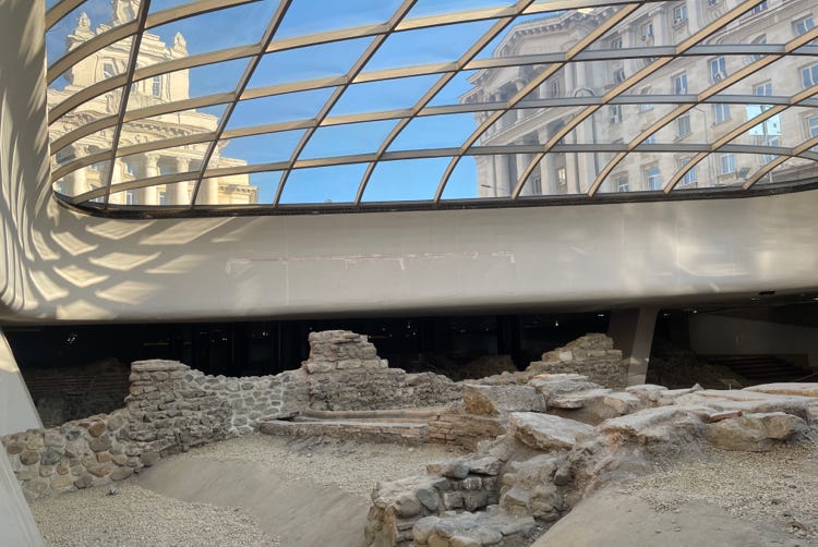 My walk continued westwards through Sveta Nedelya Place past the Sveta Nedelya Church, into Vitosha Boulevarde where the huge Sofia City Court Building made an impressive backdrop to the multitudes of trams passing through. Reversing direction as I started to head back east to my hotel, I found myself in a tunnel beneath Nezavisimost Place where I came upon an expectedly amazing site – the excavated ruins of ancient Serdica.