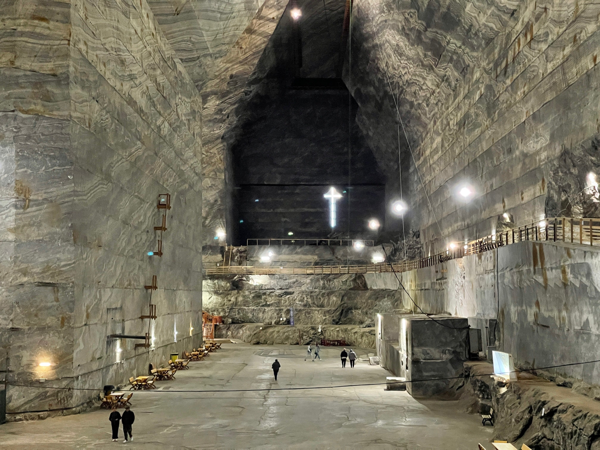 The mine still operates, but of course visitors are not permitted into the active mining area. The area that is open to visitors has been landscaped (if that is the right word for beautifying an area that is 208 metres below the surface) into 14 trapezoid chambers at two levels with heights up to 54 metres to create sanitoria for the treatment of pulmonary diseases in the saline microclimate. There are also artistic displays and even children’s playgrounds.