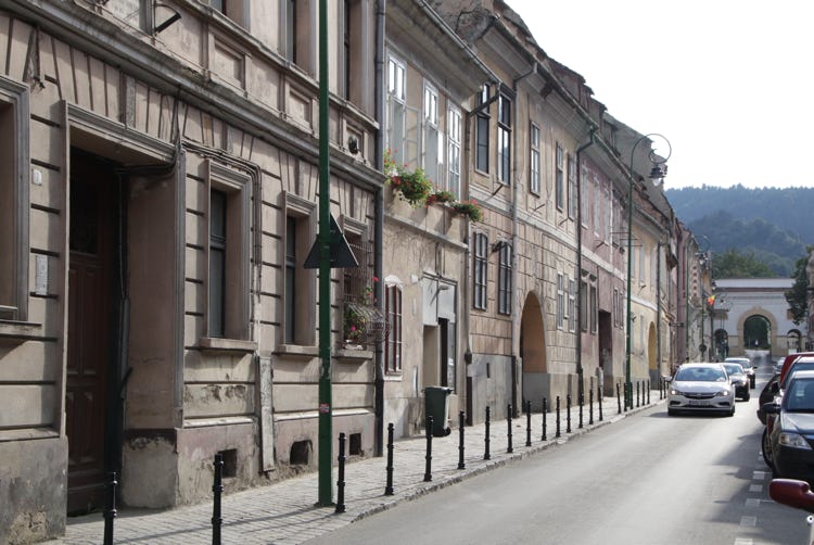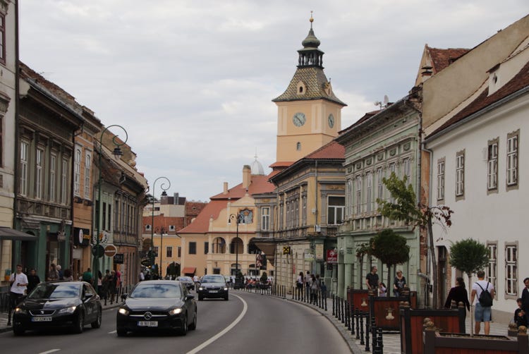 The skies continued to darken and a quick check of the weather forecast showed heavy rain predicted for this evening (accurately as it turned out – it’s pouring torrential rain outside as I’m typing this), with possible rain continuing tomorrow. In view of that forecast, I thought it might be a good idea to do a little preliminary exploring of the old centre of Braşov, which is located immediately behind the Aro Palace Hotel.