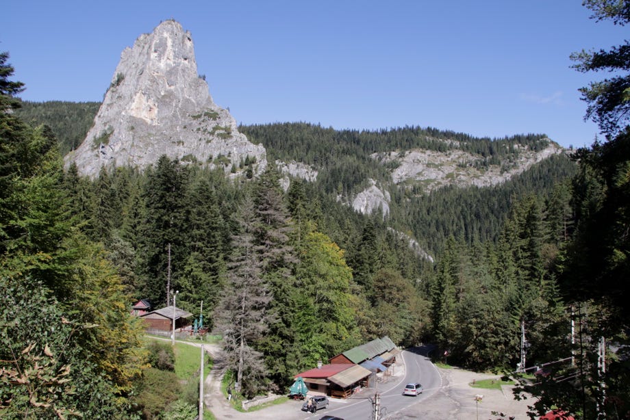 I continued driving northwards along the E578 highway until I reached the town of Gheorgheni (which you might know by its alternative name, Gyergyószentmiklós) where I turned right onto Route 12C, the road that crosses the Hășmaș Mountains through the Bicaz Gorges (Cheile Bicazului). Amazingly, and contrary to the weather forecast, the clouds cleared and the sun shone brightly as I approached the canyons, and remained that way until I emerged at the eastern end.