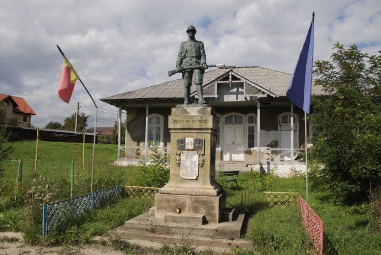 I made one more stop (to the relief of my legs and back) on today’s drive, stopping for a few minutes in Bistriţa to photograph one of the better war memorials I had seen today. The timing was fortuitous as the sun disappeared as I drove away and steady rain began to fall, lasting a little over half an hour.
