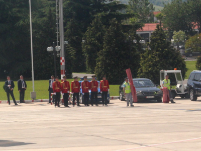 As our plane approached its parking bay, it was apparent that something more than a normal welcome was underway. The Albanian flag was flying, a team of six red coated army officers was standing to attention, armed with long swords, a black Mercedes-Benz limousine was in attendance, and a man was ready to run to the stairs of the plane to lay out a red carpet. It turns out we were sharing our plane with the Albanian President, who was returning home. And yes, as you would expect, the red carpet was rolled up again before any other passengers were allowed to disembark.