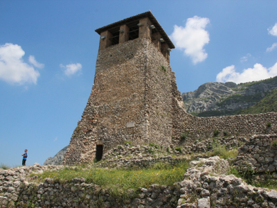 Walking around the castle was a great experience, offering superb views of the town of Kruja below as well as the ruins of the castle itself. One part of the castle had been immaculately restored and now served as a large museum. Other smaller, more humble buildings had been restored and were being used as an ethnographic museum, some restaurants and even some houses for residents who live there. Other parts of the castle were in ruins, but were no less interesting for that. The old watchtower at the top of the hill, with the small medieval church behind it, were especially interesting, and perhaps more enjoyable as the visiting tour groups and school students didn’t seem interested in climbing so far up the hill.