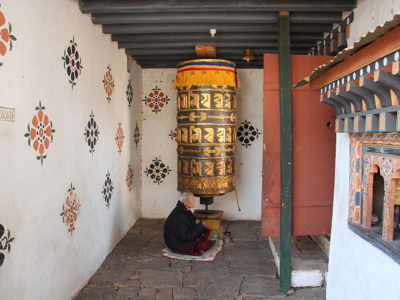 The buildings become progressively more ornate towards the south of the dzong. At the southern end of the third courtyard, the ‘hundred pillar’ assembly hall is entered after removing one’s shoes to reveal a huge room with exquisitely painted murals, artefacts, lines of benches that used as seats during ceremonies – but only 54 pillars. Unfortunately, like the inner sanctums of all Bhutanese monasteries, photos were not permitted in the ‘hundred pillar’ assembly hall.