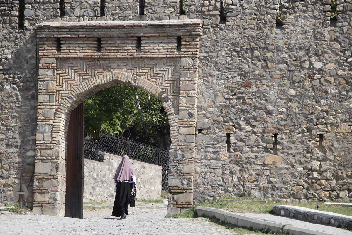 Our intended first stop this morning was Şǝki’s most famous sight, Xan Sarayi, or Khan’s Palace. Set within a strong set of high defensive stone fortress walls, the palace was supposed to open at 9:00am according to a sign at the entrance. However, after hanging around for 20 minutes, we were told that the staff would probably come in today at about 10:00am, because that is when they arrive every day.