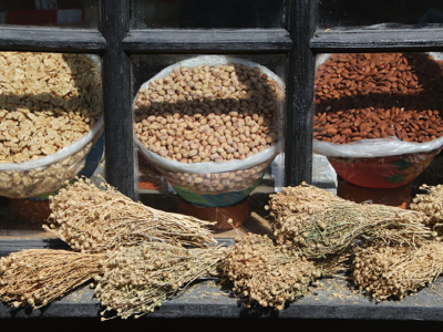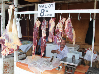 We walked downhill through the grounds inside the fortified walls, past an old Russian church and through the workshop of the craftsman responsible for the continuing restoration of the Khan’s Palace, and re-joined our bus for the short drive to the centre of the new city and the sprawling Tǝzǝ Bazaar, the city’s main market. We spent a fascinating half hour walking through the markets, admiring the fruits, vegetables, open-air sale of cheese, meat and fish, and the vast array of household goods and clothing.
