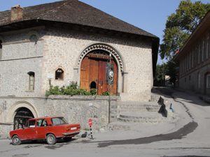 Despite the late hour (we arrived at about 6:30pm), this was a thoroughly enjoyable visit. The tower palace is now a museum, and a climb up an uneven set of about 40 steps revealed a lovely panoramic view of the surrounding countryside. Being Friday evening, a priest and his assistant were saying prayers in the church, a moving experience when surrounded by frescoes on the walls that date from 1577. The frescoes haven’t been restored, and some are in a bad state of disrepair as the church was closed and used as a cattle shed during Soviet times, during which many of the frescoes were vandalised or simply neglected.