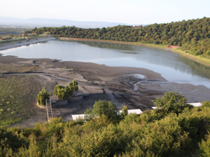 An overnight thunderstorm in Kvareli cleared the thick haze that greeted our arrival last night, and the air this morning was crystal clear, giving me a lovely view from my bedroom window across the dam and lake that comprises Lake Illia (also known as Lake Kvareli).