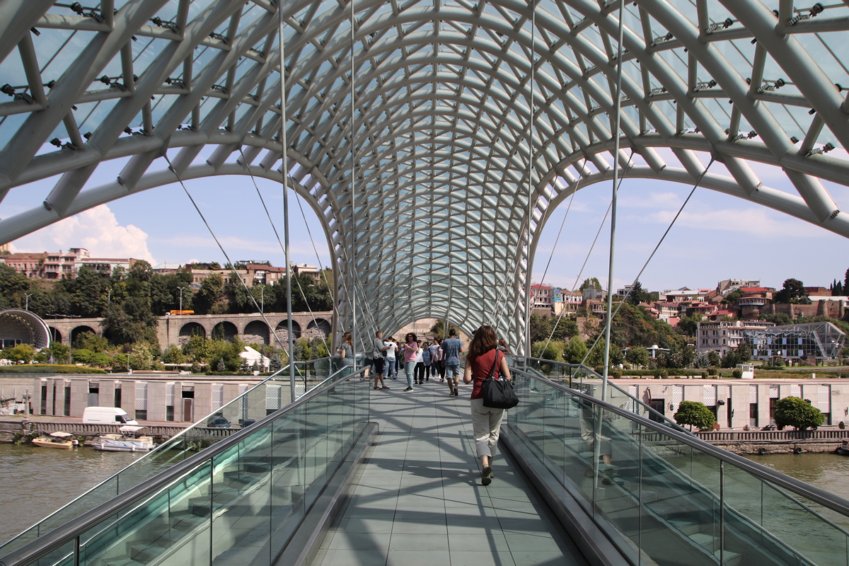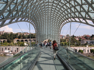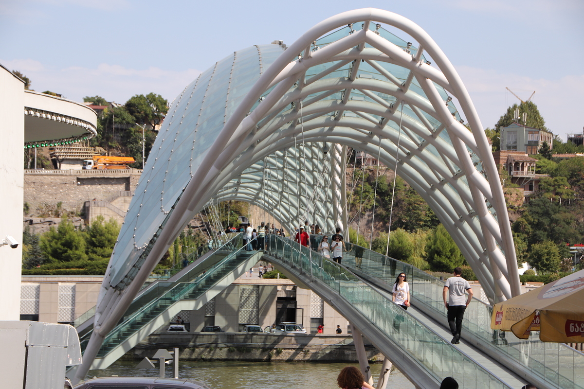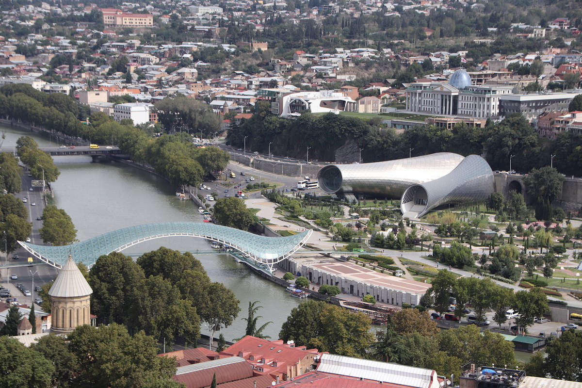 It was evident during this walk that Tbilisi is an explicit blend of old and new. Perhaps controversially, Georgia’s post-Soviet governments have tried to modernise the city by erecting very modern glass, steel and aluminium buildings amongst the historical buildings of the old city. In most places, this would ruin the character of an old city, but in Tbilisi it seems to work well, perhaps because the new buildings are generally free flowing designs that reflect rather than dominate their surroundings.
