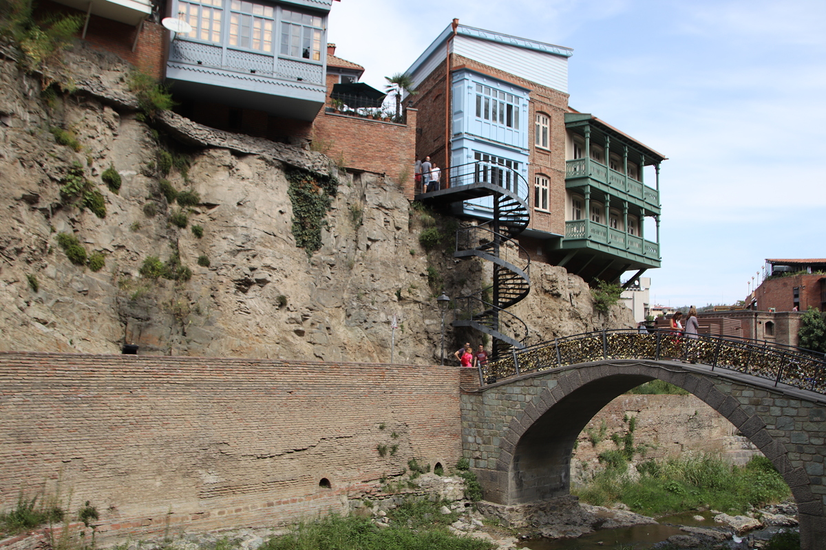 Walking further down the hill we passed a lovely waterfall – not a large one, but the only one in the city of Tbilisi – and then we followed the river past beautiful old houses and many of the city’s famous sulphur baths.
