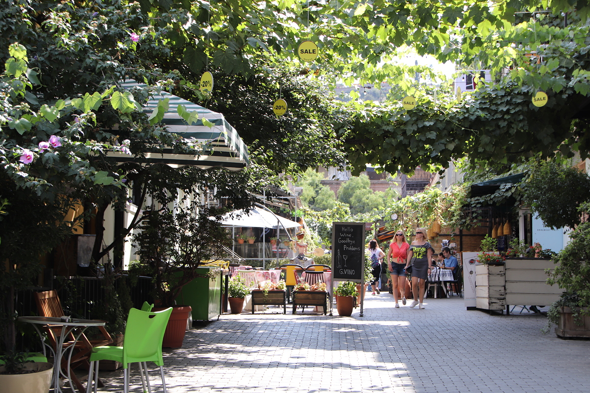 The weather forecast for today was not great – skies mostly cloudy becoming overcast by mid-morning for the rest of the day. The day did indeed start mostly cloudy, but rather than becoming overcast the skies cleared to a bright sunny day with temperatures rising to 30 degrees Celsius. In some cities, spending the day walking in such warm conditions might be a bit onerous, but in the case of Tbilisi, there was plenty of shade that make walking a real pleasure, despite the steep hills and cobble-stoned laneways in many places.