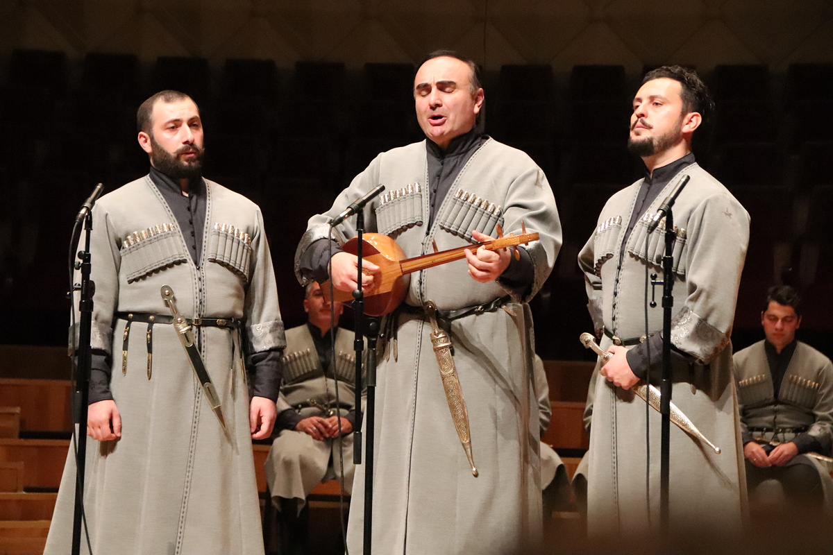 The singing was in traditional Georgian polyphonic style (see link HERE). Polyphonic singing is unique to Georgia, and is incredibly complex. It was largely a lost art during the Soviet period because it was seen as synonymous with Georgian nationalism. Never written down, it was revived in the early 2000s by listening to and analysing old recordings made between 1900 and 1910.