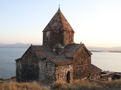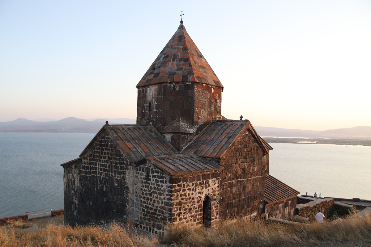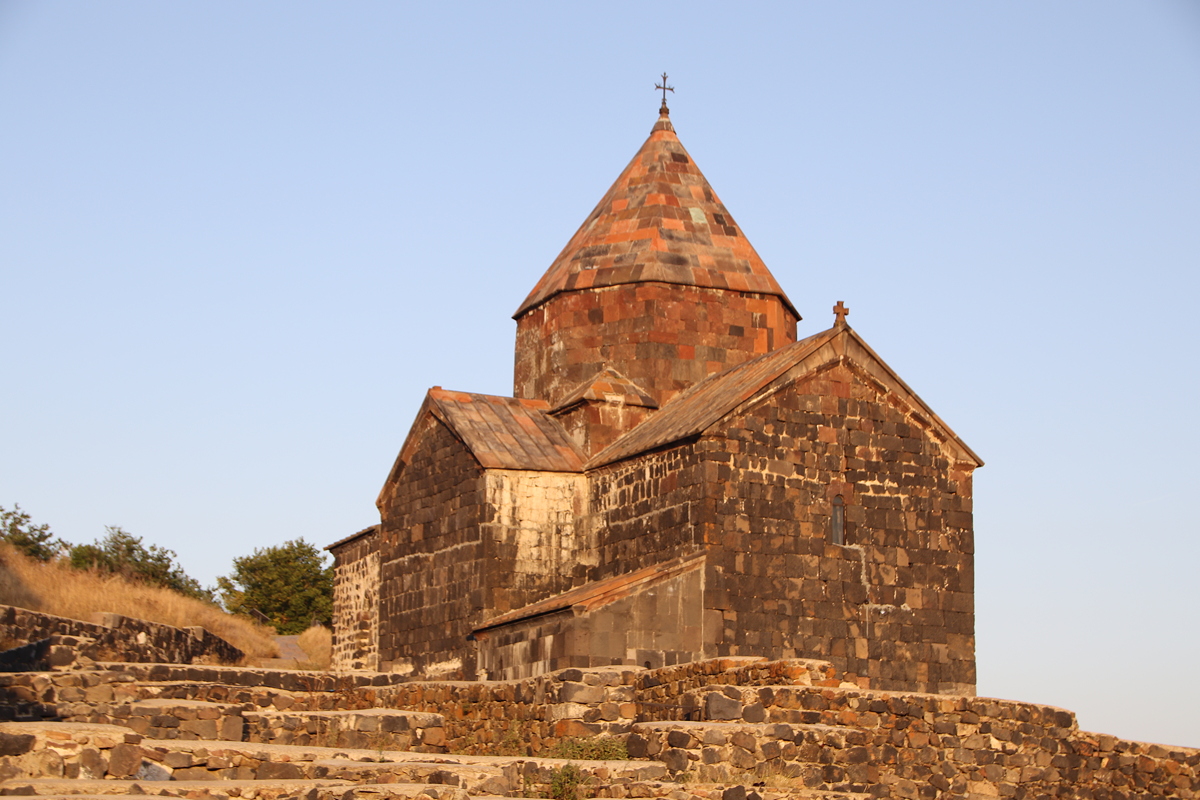 Sevanavank dates from the early days of Armenian Christianity. Although the two main churches, Surb Arakelots (Apostles) and Surb Astvatsatsin (Holy Mother of God), date from the relatively ‘recent’ year of 874, it has been suggested that ruins at the top of the hill of the Surb Harutyun may date from as early as 302AD. Surb Harutyun was destroyed in an earthquake in the mid-1000s, by which time the other two churches that still stand today were fully operational. The buildings were constructed from black tuff, which probably gave the monastery its name Sevanavank, which means “the Black Monastery”. Whatever the reason, the churches looked lovely in the last golden rays of sunlight which we managed to get just before the sun dipped below the horizon for sunset.