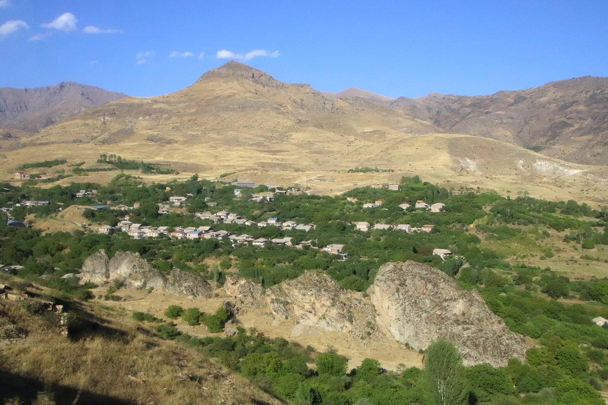 With a departure scheduled for 8:40am this morning, I found time to have a quick walk around Goris after breakfast and before we left. Set in a large amphitheatre-like basin and surrounded by a ring of high mountains, Goris is quite a pretty city, although far less economically developed that the capital, Yerevan. Unlike Yerevan, where the buildings are mainly built from rose tuff, the prime building material in Goris is large river stones held together with concrete. Goris therefore had a somewhat grey appearance (especially in the early light before the morning mists have lifted), although the greyness is relieved by plentiful green tree planting, and the buildings often feature attractive tall arches in their design.