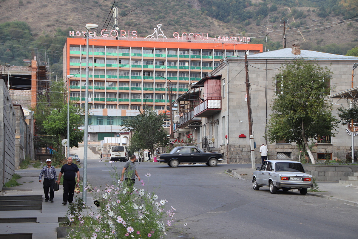 The Hotel Goris, where we stayed last night, stands out like a sore thumb in the general architecture of Goris. Built in Soviet 1960s brutalist style, the hotel is the city’s tallest building, and dominates its surrounds. Interestingly, on a large banner in the hotel’s restaurant, the hotel markets itself as “Novotel & Ibis Style Goris”, despite having no relationship with Accor’s hotels; a more accurate description might be “Soviet Intourist Style Goris”.