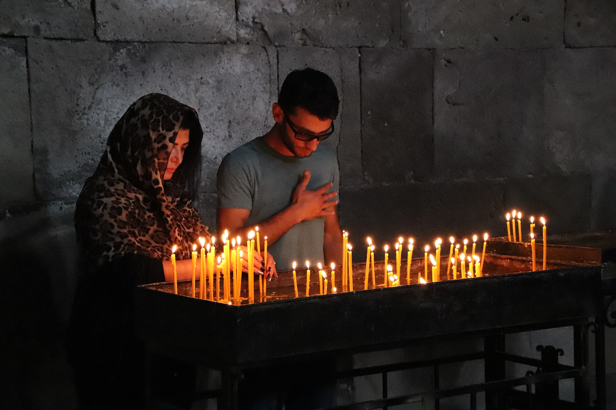 We moved on to the main church in the complex, the Surb Poghos-Petros (Church of Saints Paul and Peter). Being Sunday morning, a service was underway, and it was wonderful to observe the worship practices, some of which go back to the very beginnings of Christianity. I could have stayed much longer in the service, but there was more to see in the monastery, and we visited various parts including the kitchen, a shrine, several khachkars, the classrooms of the monastery’s university, the library, some small chapels and a tower.
