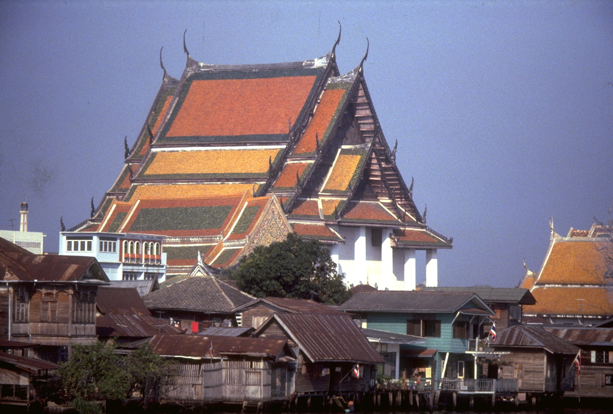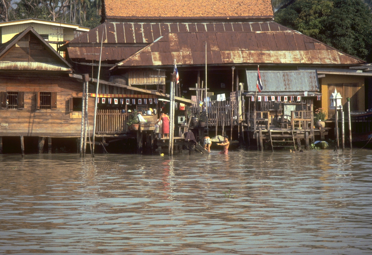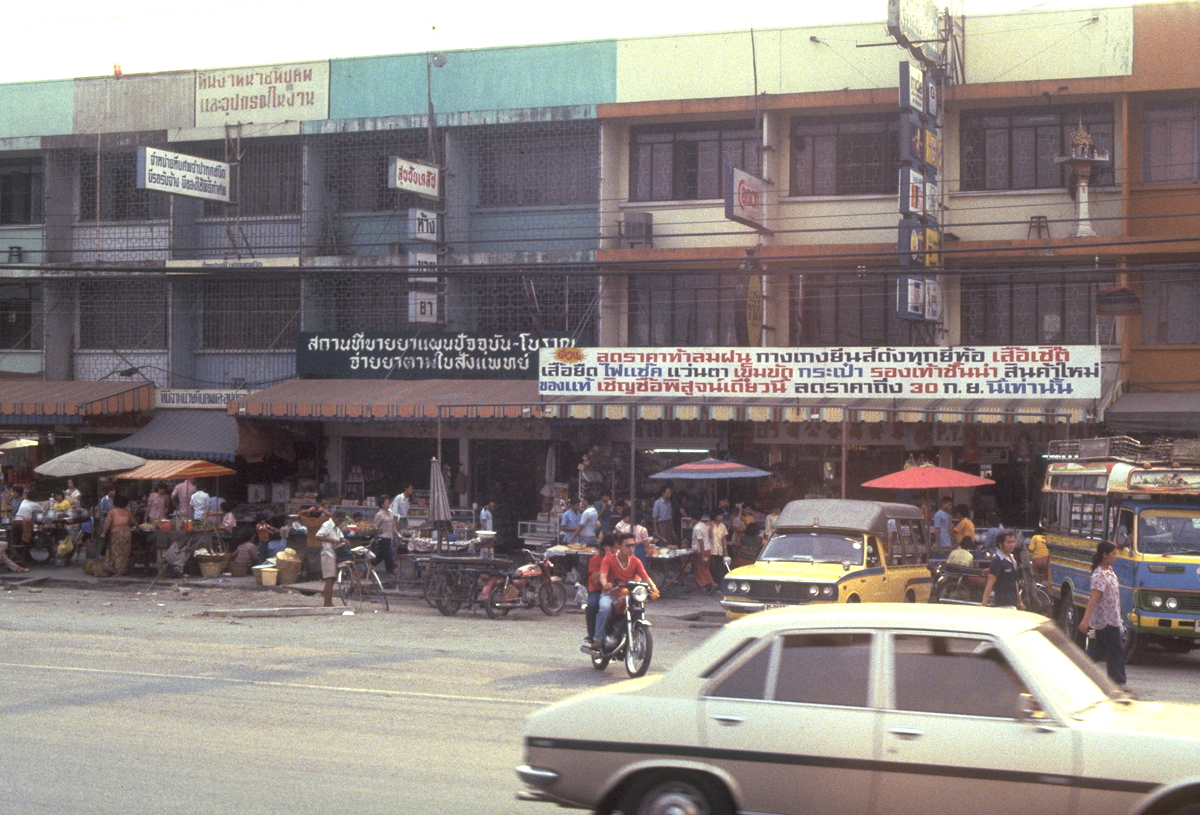 Before dinner I went strolling again along Rajaprarob (or Ratchaprarop) Road, taking lots of photos of course (I’ve just finished by fourth 36-exposure film for the trip). Still being daylight, I even wandered along some of the back lanes. Simply fascinating.