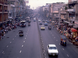 We returned to Bangkok along the Asian Highway, Thailand’s best road, which goes on northwards to link Bangkok with Rangoon and Calcutta. We passed through many kilometres of rice padis , but as they are at the end of the dry season, there was almost nothing to see except a little burning off of the stubble. Actually, the flat land and the greyish appearance reminded me of the countryside between Hay and Balranald during a drought.