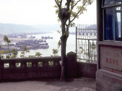 From the Museum we drove to a lookout which overlooks the junction of the Yangtze River and its major tributary, the Jialing River. This provided us with a small foretaste of the Yangtze River cruise to come. Perhaps the most noteworthy point was a bench mark marking the high point of the July 1981 floods last year. Although the lookout was about 50 metres above river level, we would have been wading in water at the time – and that’s a lot of water for a huge river valley! Leaving the confluence, we travelled to downtown Chungking for our one hour wander.