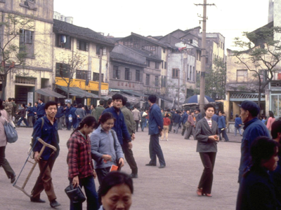 From there we went to downtown Chungking to walk through a free market. Free markets are a very new innovation in which farmers are permitted to sell their produce directly to the public, by-passing the hitherto compulsory state distribution system. Farmers generally keep the best quality produce for the free markets (selling lower quality produce to the government) because they can get top prices which they can keep for themselves.