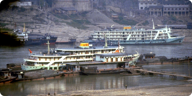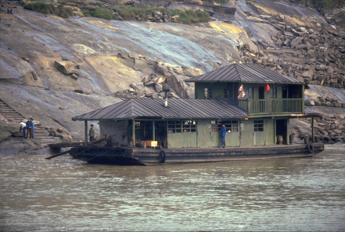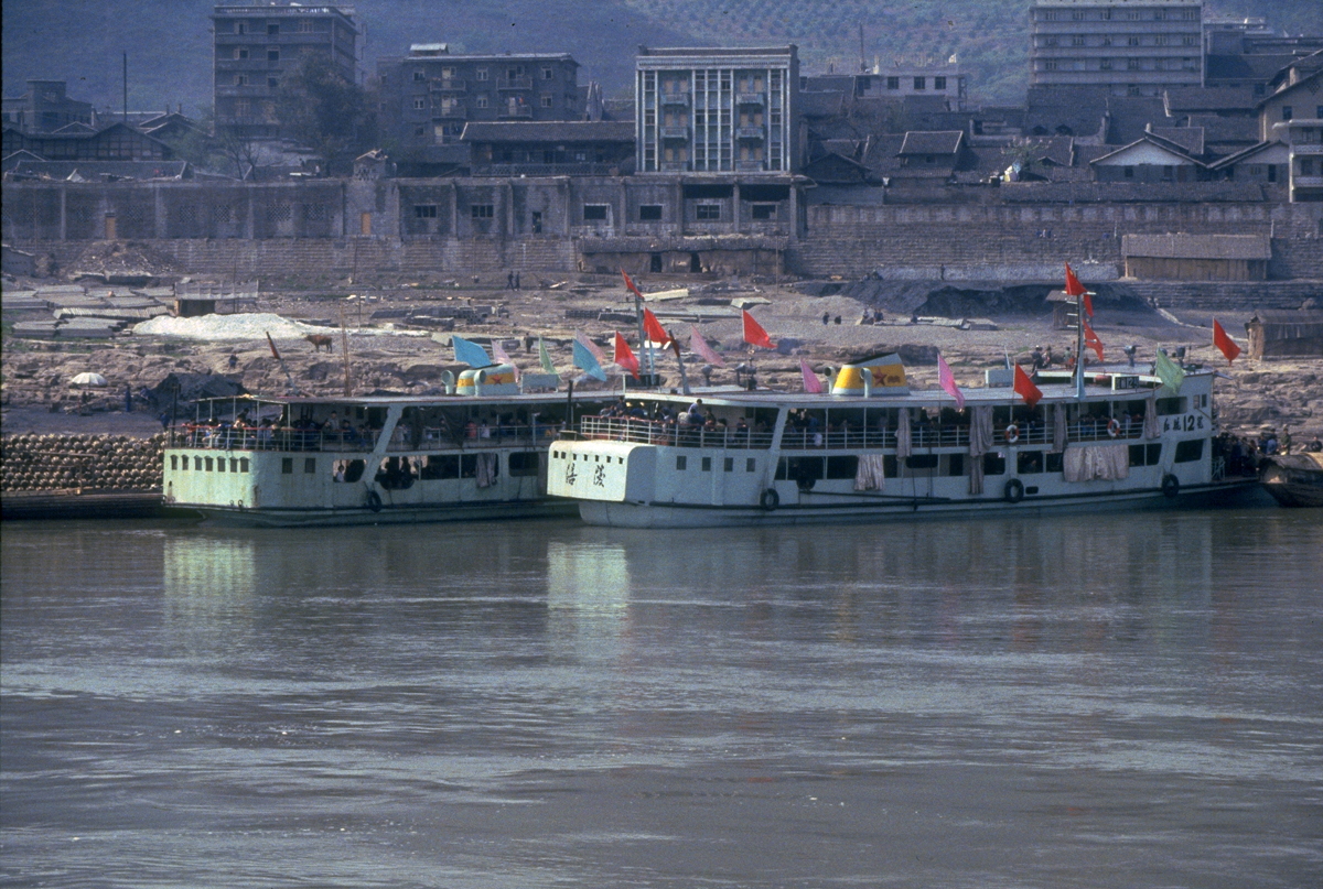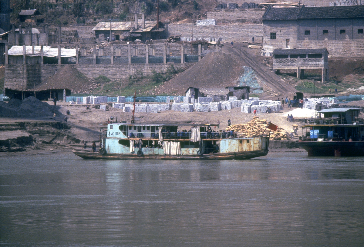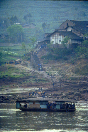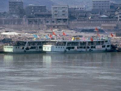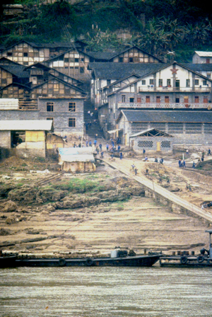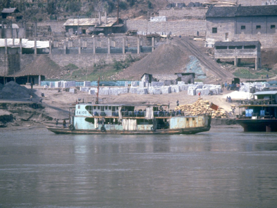 Floods occur on the river annually and they are often quite severe; the river rose 40 metres at Wanxian during last year’s flood. Despite the high “buffer zone” between the river and all towns along the Yangtze, including Wanxian, the river did enter the town and cause damage to houses and roads. No lives were lost in Wanxian, however, as adequate warning were received from upstream stations. We were told that the 40 metre rise in water level “occurred overnight”.