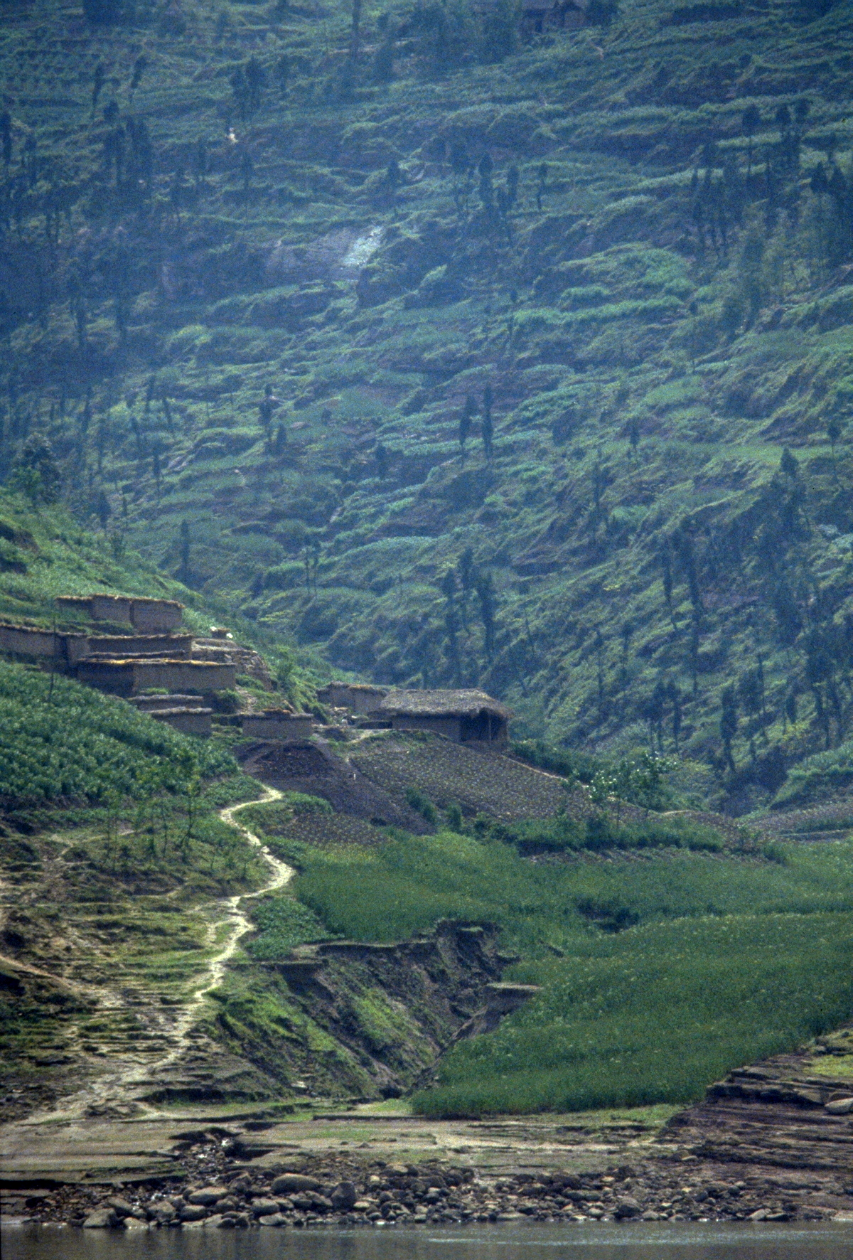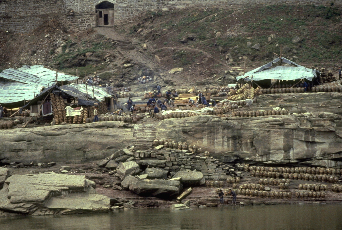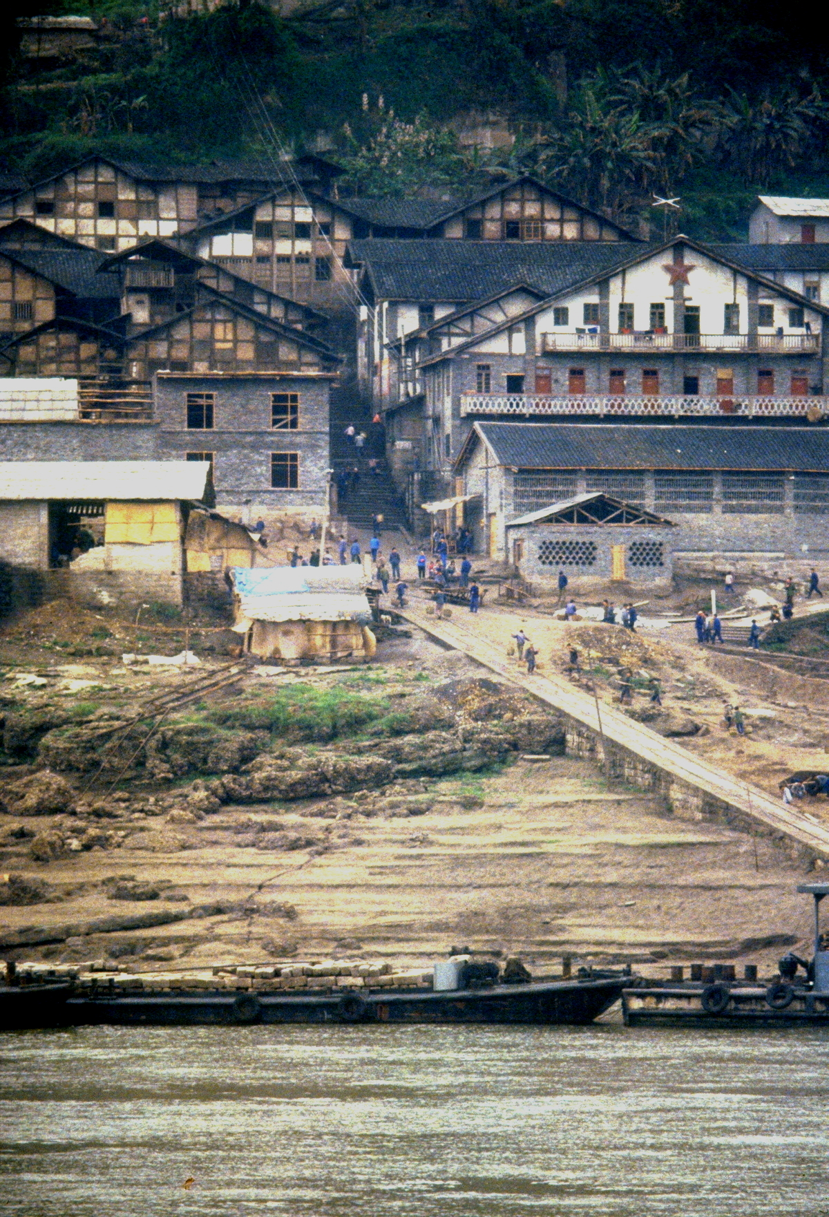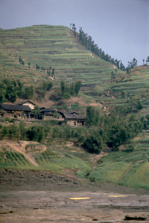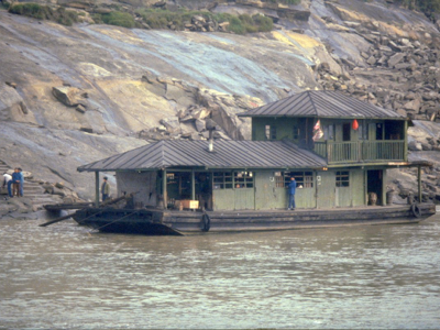 Floods occur on the river annually and they are often quite severe; the river rose 40 metres at Wanxian during last year’s flood. Despite the high “buffer zone” between the river and all towns along the Yangtze, including Wanxian, the river did enter the town and cause damage to houses and roads. No lives were lost in Wanxian, however, as adequate warning were received from upstream stations. We were told that the 40 metre rise in water level “occurred overnight”.
