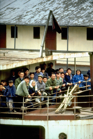 Today’s trip was marred somewhat by a fairly heavy fog that persisted for most of the day. Downstream from Chungking we passed Changshow, a small industrial centre, and we stopped briefly at Fuling to pick up and drop off some passengers. As always, we caused great consternation among local people – when members of our group stood on the deck when we docked, it seemed to be the most exciting thing that has happened in Fuling for many years.