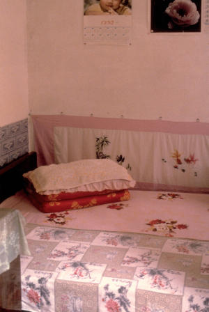 The 11 people were herself, five children, two daughters-in-law, one grandchild and one mother-in-law (plus someone else who remained unidentified), making up four generations in total. Her husband, eldest son and daughter-in-law all work in Sian, so don’t live in the house. Mrs Chou’s days are spent looking after the house and her grandchildren, while the other adult residents of the house work in the commune’s farming fields.