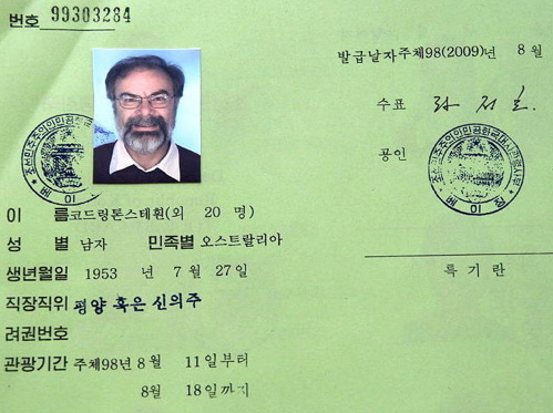 On the drive, we were reminded that the main cause of problems faced by foreigners visiting Korea is inappropriate taking of photographs. We were told not to take photos of the military, of people performing manual labour (because Korean people like to be dressed properly for photographs), of bus stops (where the lines are often very long), or of poverty. We were also told to be careful with printed photographs of Kim Il Sung and Kim Jong Il, and to treat them with respect, as there had been a very serious incident last year (which was only solved after long negotiations and formal written apology) when a German tourist had crumpled a photo of the Dear Leader and thrown it in a bin.
