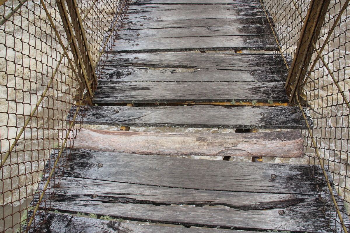 It was easy to understand how someone might be swept away by the river’s waters. The torrent of water was fast, turbulent and thick opaque brown in colour. It made a loud roaring noise as it raced under the bridge, and with many gaps in the timber slats on the bridge, the wise motto was ‘don’t look down’.