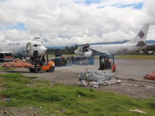 I made two stops in Wamena. The first stop was at the section of the airport where the old terminal had burnt down. I was interested in visiting there for two reasons: to see the concrete slab (which is all that remains, so it didn’t take long to explore), and to see the freight handling. Everything that comes into the Baliem Valley arrives by air, and there are many more freight flights each day than passenger flights. The freight handling is done on the concrete slab that used to be the old terminal, and with the growth of the Baliem Valley’s population, it was not surprising that the forklift trucks were busily humming backwards and forwards when I visited.