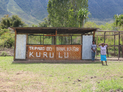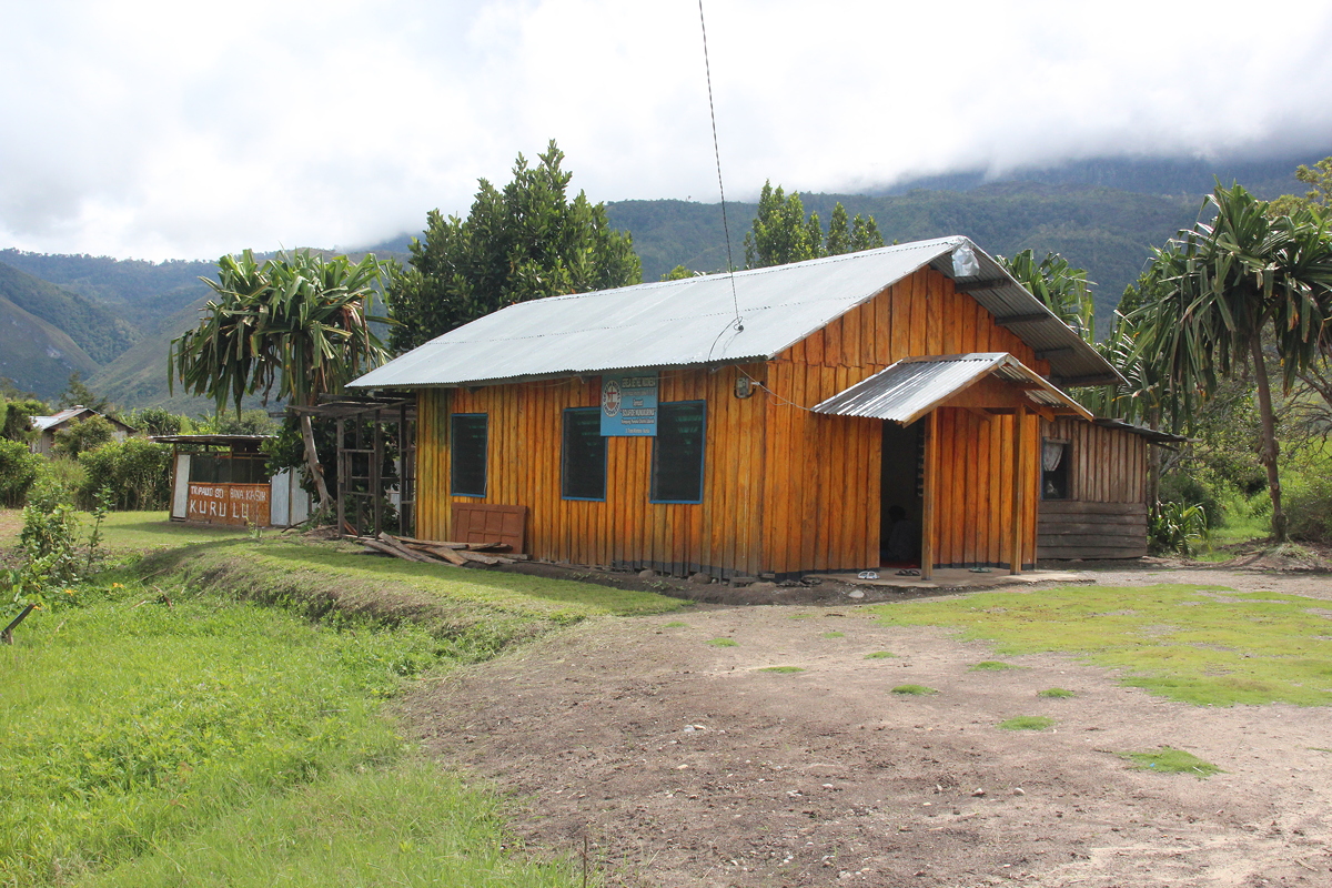 Eventually we found a small church beside the road at Kurulu. The preacher, a Dani man (the first I have seen wearing a coat and tie) interrupted his sermon to invite us in, so we removed our shoes and joined the other seven people who made up the congregation sitting on threadbare red mats on the concrete floor.