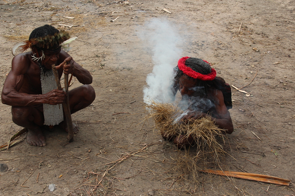 Yali proudly showed us how to make fire by rubbing a reed against some timber before showing us around his compound. He mentioned that no women may come within a metre of so of the front of the men’s hut. As I am not a woman, I somewhat presumptuously asked whether I might be allowed to have a look within, and I was immediately and enthusiastically invited inside.