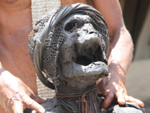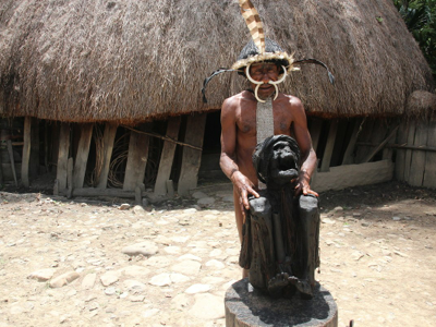 There are mummies in several Dani hamlets, although only a few are allowed to be seen by visitors. When an especially esteemed chief dies, the villagers sometimes choose to mummify the body rather than cremate it (which is the usual practice). The mummified body is kept upstairs in the men’s hut where the smoke from the fires that burn inside each night (to provide warmth) help to preserve the body (as well as choke the lungs of the living with carbon soot, hence the short life spans of Dani people).