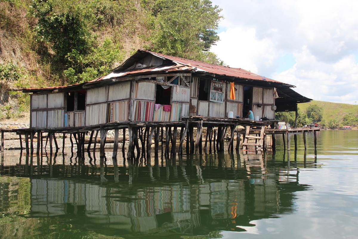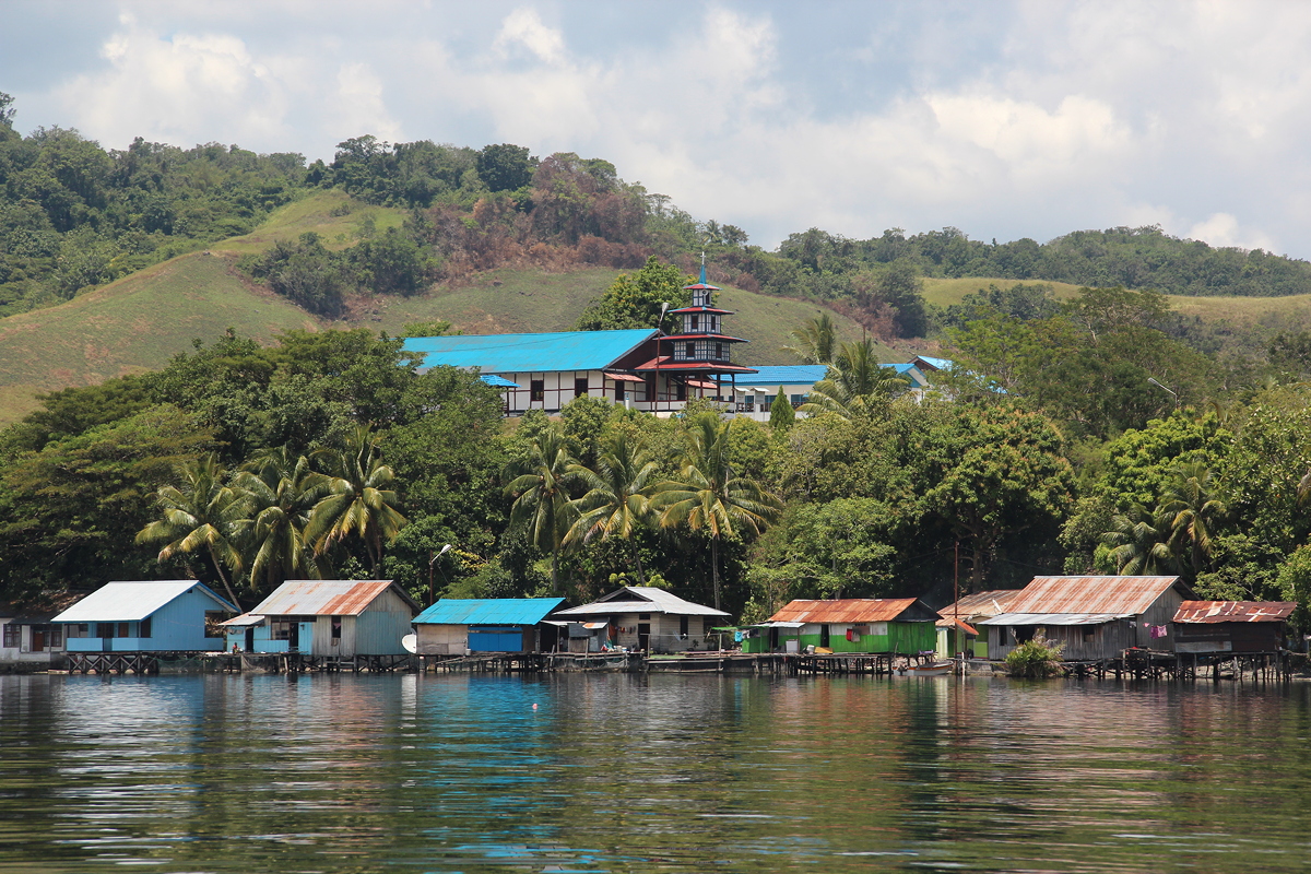 Lake Sentani is a 20 kilometre long lake that formed in a caldera after a volcanic cone collapsed. It is a truly beautiful place, and today the water was almost mirror-smooth. We went on a half hour boat trip around a section of the lake to see the housing of the local Sentani people. The houses have been built in quite a distinctive style, being built on stilts around the edge of the lake, often with fishing cages in lake outside or underneath.