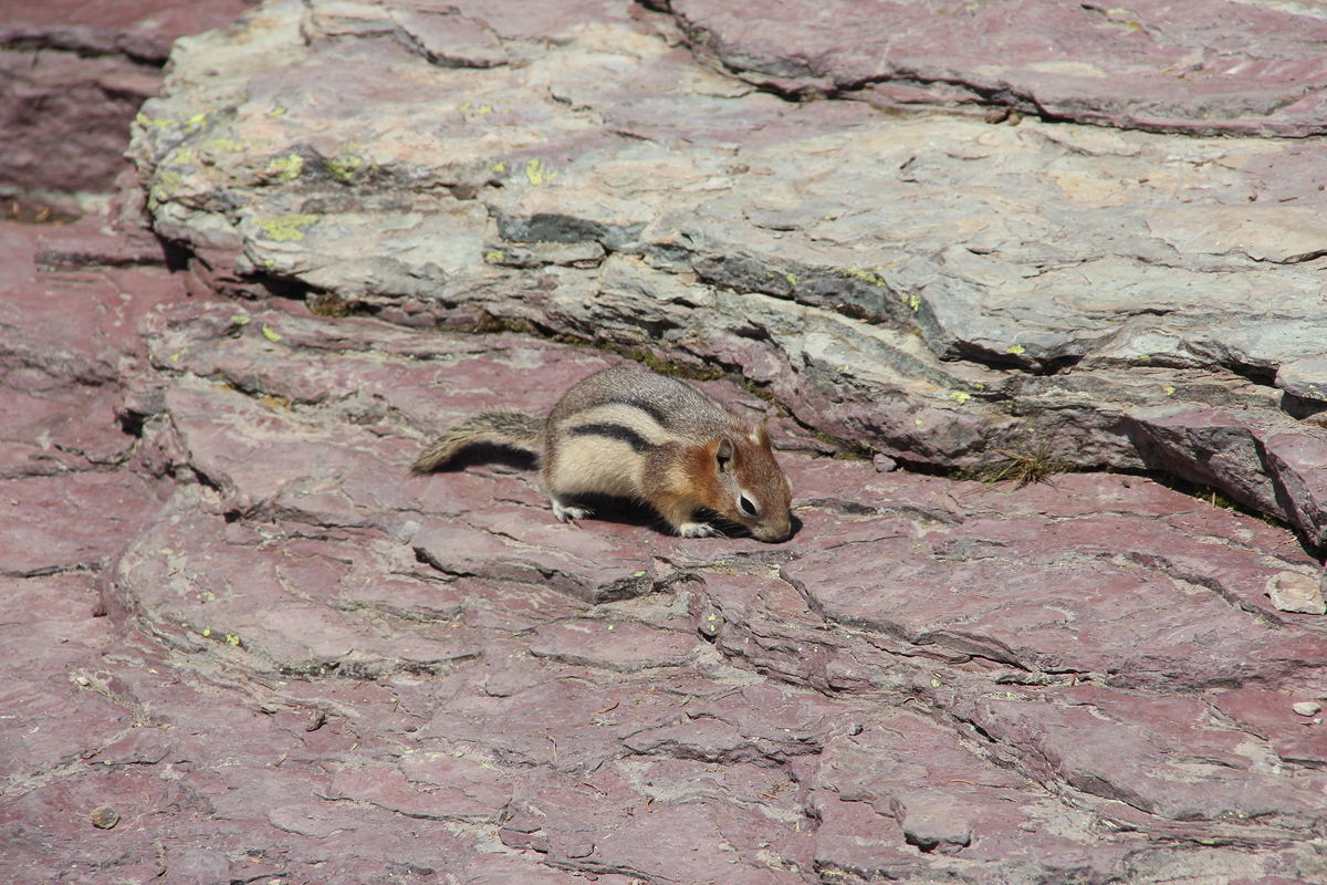 After meeting up with Di again at the foot of the moraine, we continued along to the lookout over Hidden Lake – one of nature’s grand vistas. Once again, we were joined by some mountain goats, a chipmunk and some marmots.