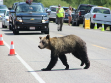 The reason was that a grizzly bear was beside the road, and the indications were that it was about to cross the road. Normally, the recommendations are that people should stay at least 100 metres away from a bear, but in this case, it was less than 30 metres away from the crowd of excited onlookers.
