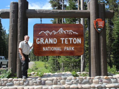 We set off at about 9 am this morning, and by 11 am (right on schedule!), we reached the northern boundary of Grand Teton National Park. Soon after entering the park, the wonderful panoramic vistas began to open up before us as the peaks of the mountains rose above the blue waters of Jackson Lake.