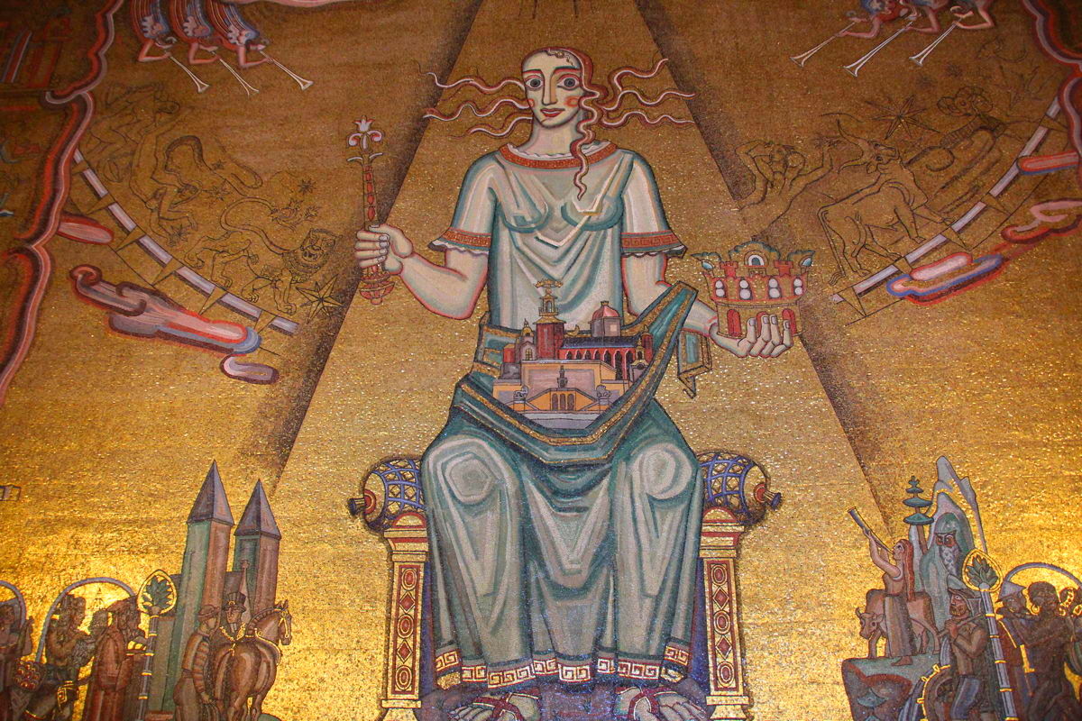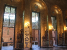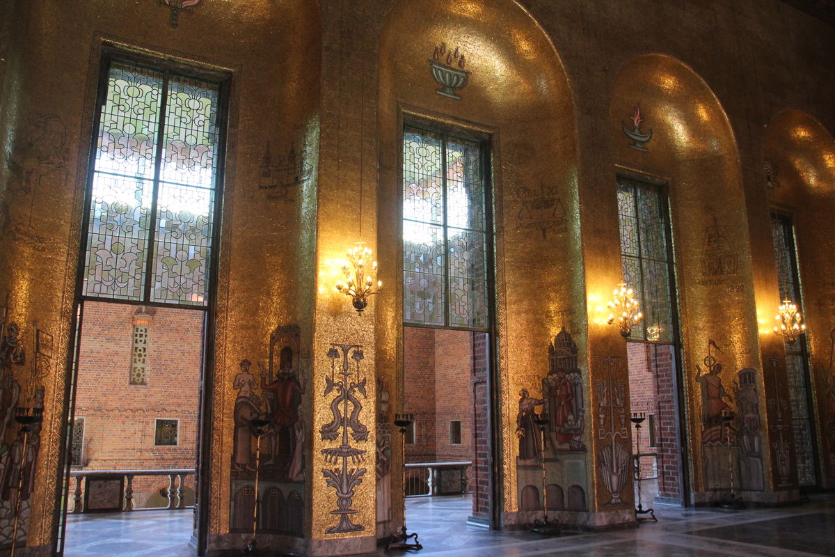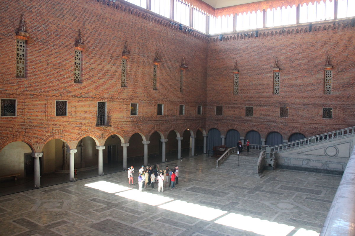 Our first visit was the Stockholm City Hall. Despite its classical (and grand) architecture, this imposing building is only about 90 years old. As well as being the building where city council meetings are held and where Stockholm’s city officials work, the building also hosts the annual Nobel Prize Awards ceremonies and banquets. Visits to the building are only arranged as group tours, so we joined a group and were both very impressed with the building and the architectural surprises that it held.