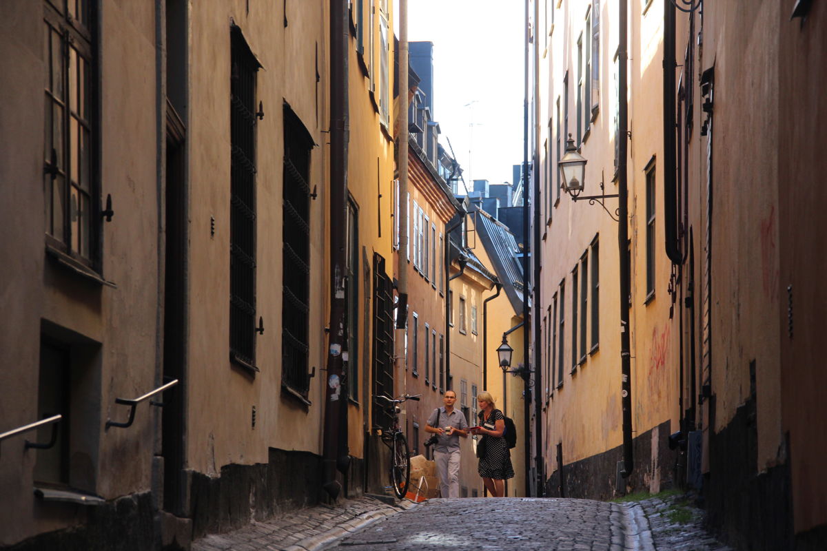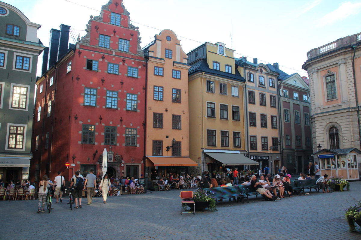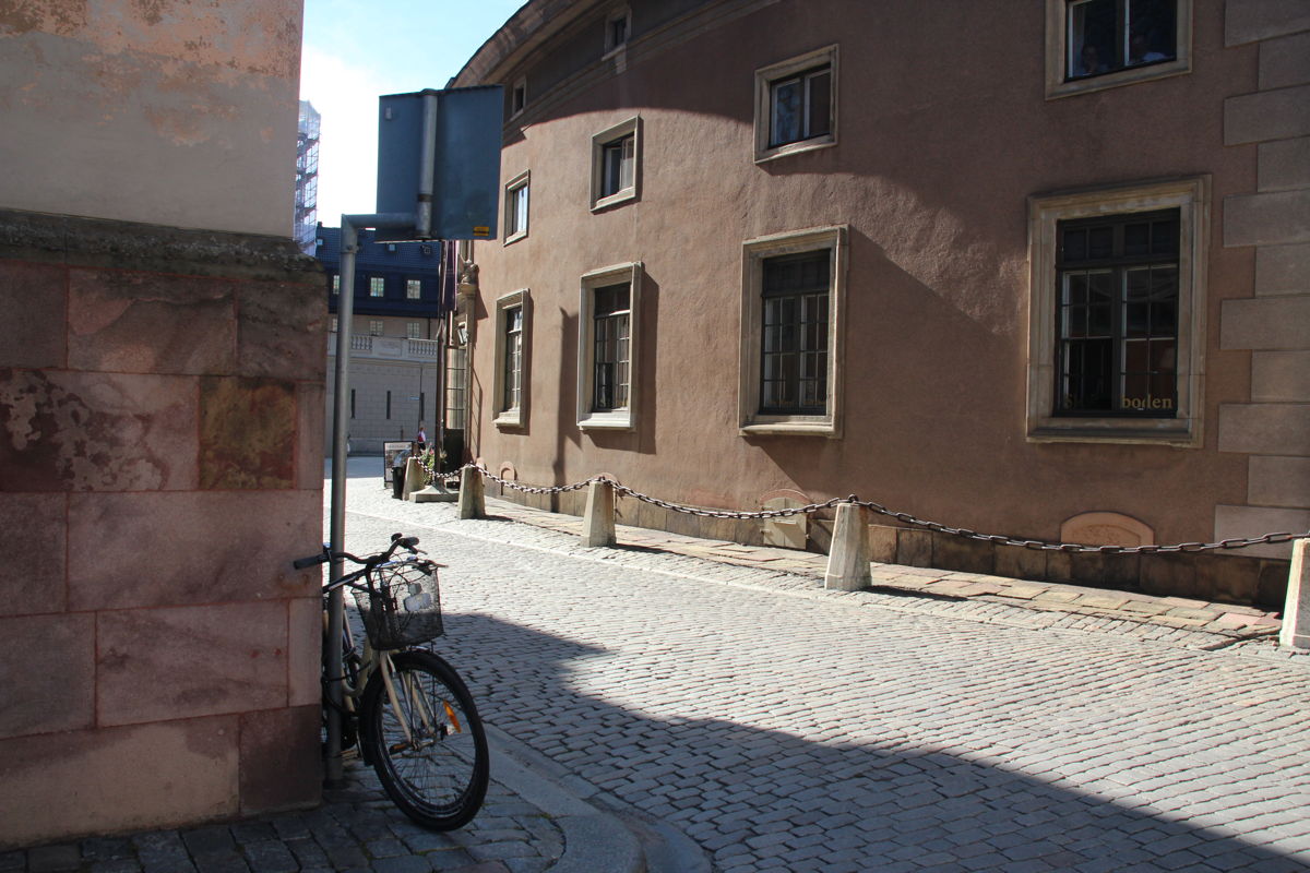 A further short walk across a bridge brought us to Gamlastan, the main area of Stockholm’s Old Town. More vibrant and more commercial than Riddarholmen, Gamlastan was Prague-like in its beauty (= high praise!). Narrow streets lanes lined with beautifully preserved old buildings, painted in pastel colours, led us enticingly onwards. We were constantly intrigued by small surprises we encountered – beautiful little open squares, fascinating shops, the changing of the guard at the Royal Palace, and so on.