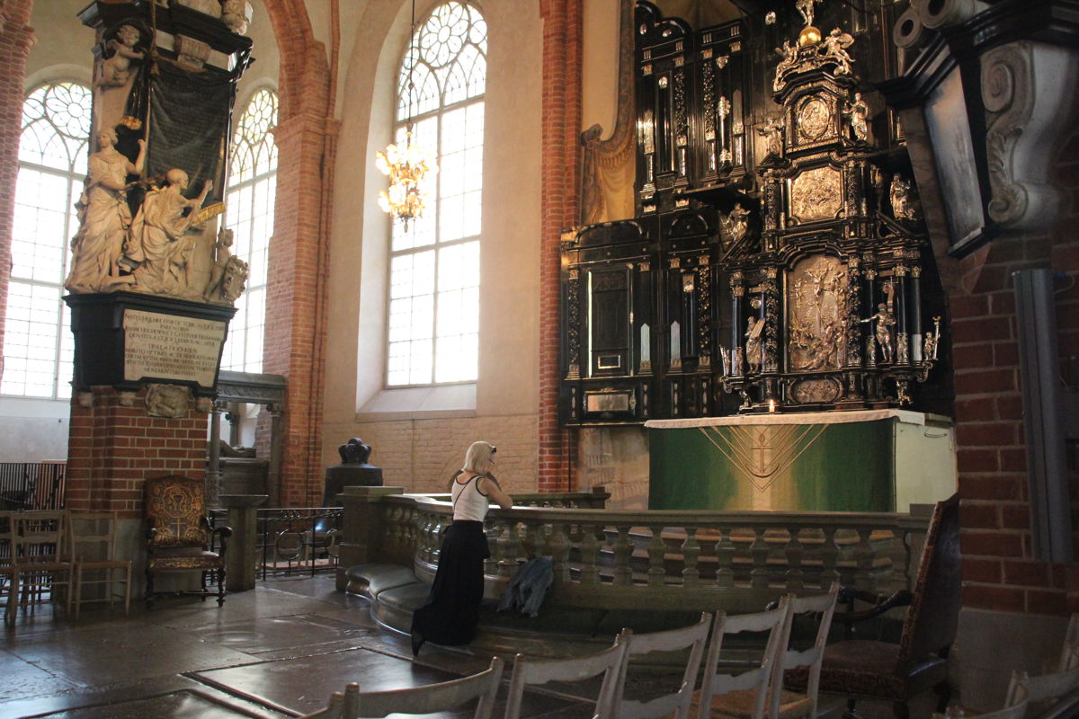 We took the time to go inside one beautiful old church, called Storkyrkan. Founded in the 13th century and built in the Swedish brick gothic style, this was a fascinating building with aspects of Catholic architecture (such as the large altar), a huge statue of St George slaying the dragon, special stalls for the Royal family, and a huge (actually, very huge) painting showing the Last Judgement.