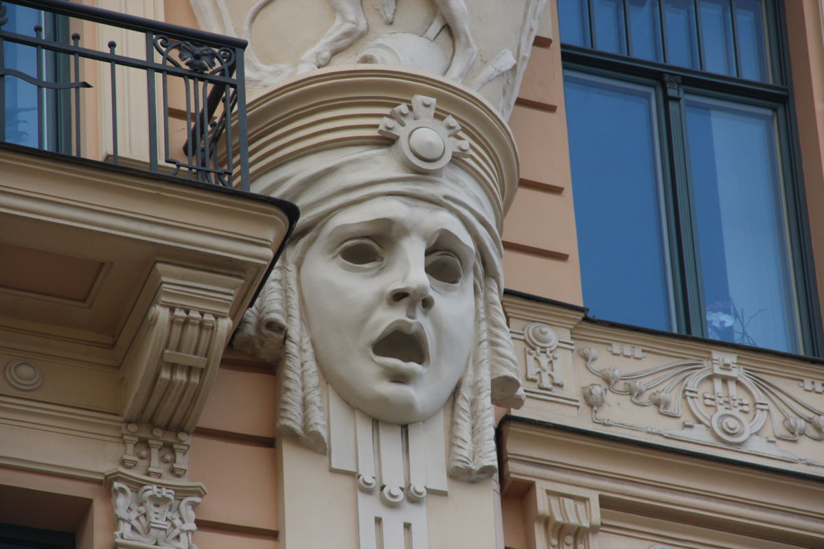 Our walk began in Dome Square, beside the Dome Cathedral in the old city. From there, we followed a twisting route through to the northern edge of the old city and into a newer area – ‘newer’ in this context meaning buildings constructed during the 18th and 19 centuries. After passing the National Theatre Building, we passed through a huge area of parklands known as the Kronvalda parks before arriving at one of the highlights of today’s walk (for me), some gorgeous buildings with exquisite and intricate exterior decorations in the Art Nouveau style along two streets, Strēlnieku iela and Alberta iela. Some of the buildings, such as the Riga University of Economics and the Riga University of Law, were especially magnificent, but they were not the only ones – the two streets mentioned above were like an art gallery of outstanding art nouveau architecture.