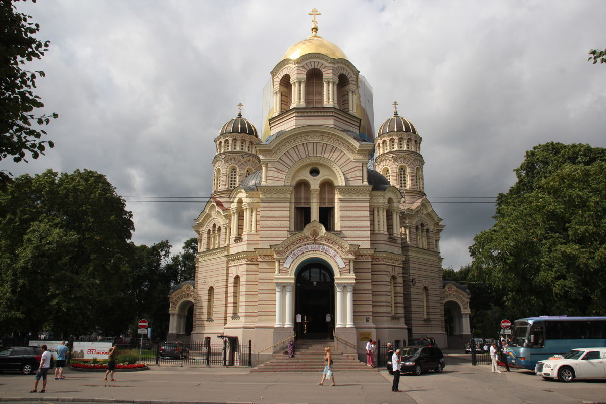 Our walk continued northwards, past the Latvian University, through another large park (Vērmanes Dāres) that had some brilliant children’s playing areas, past the Spendid Palace Cinema with its ornate entrance and the brutally-styled building that houses the Cabinet of Ministers of the Republic of Latvia, eventually arriving at the Orthodox Cathedral of the Birth of Christ.