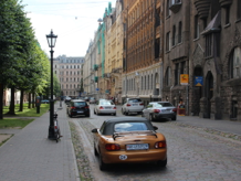This relatively modern looking large Russian Orthodox church was, like so many buildings in Riga today, under renovation, although in this case, only the main dome was covered by scaffolding. Interestingly, a wedding had just been conducted in the church, so we were able to join the other onlookers and watch the bride and groom drive away in their elegant old Rolls-Royce, followed by a convoy of other more modern cars carrying the families and the photographers.